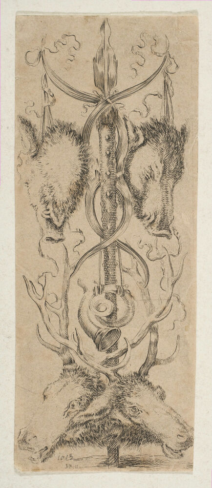 Hunting Trophy with Stag Heads at Bottom