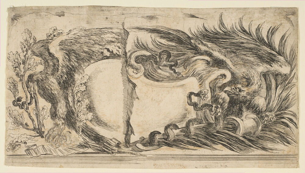 Two Different Halves of Cartouches Each Showing an Eagle Fighting a Serpent