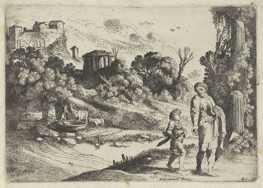 Abraham en Isaak onderweg naar de offerplaats