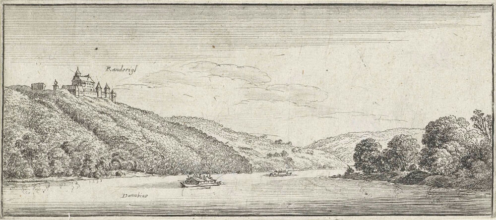 Landschap met gezicht op slot Rannariedl aan de Donau