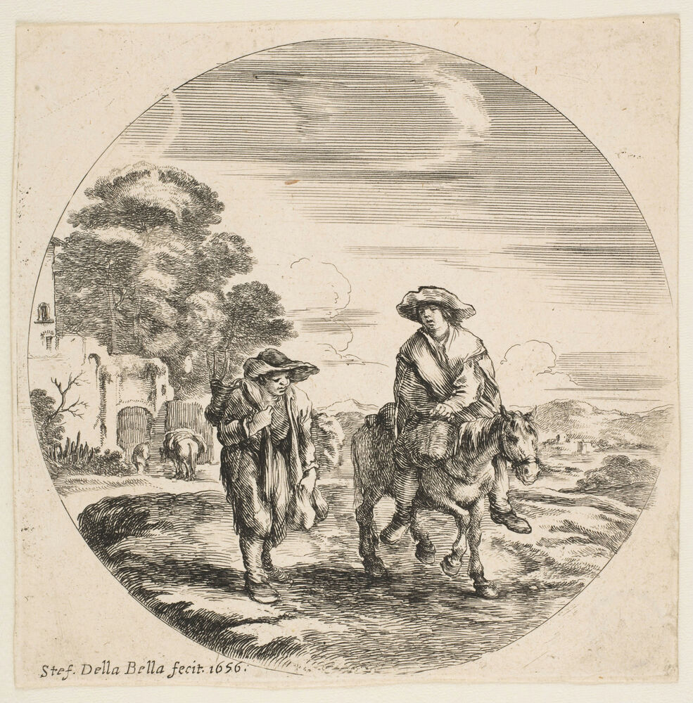 Landscape with Two Peasants, One Riding a Horse, from 'Landscapes and seaports' (Paysages et ports de mer, dans des ronds)