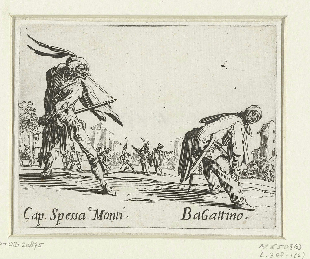 Twee straatartiesten als Capitano Spessa Monti en Bagattino