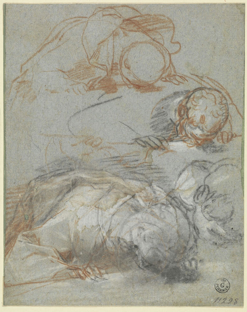 Three Studies of Bending Figure and One of His Head (for “Assumption of the Virgin”, Milano, Collezione Castelbarco Albani)