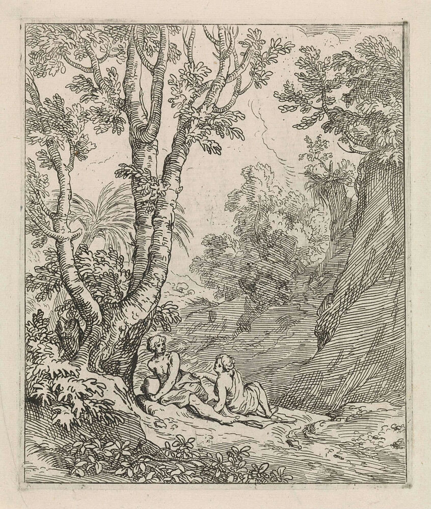 Twee figuren in Arcadisch landschap