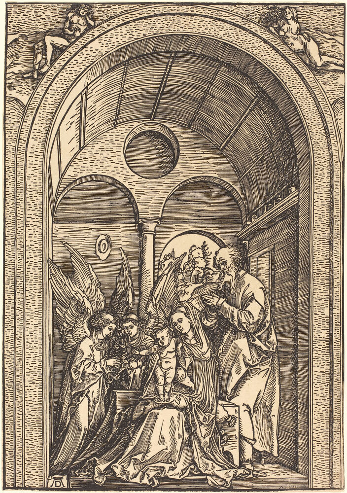 The Holy Family with Two Angels in a Vaulted Hall