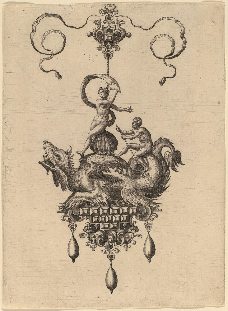 Design for a Pendant with a Winged Sea-Monster Carrying Venus Anadyomene on a Shell and a Man with an Oar