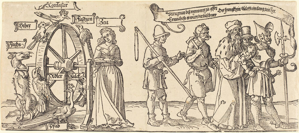 Time and a Fox Turning the Wheel of Fortune with People of all Ranks to the Right