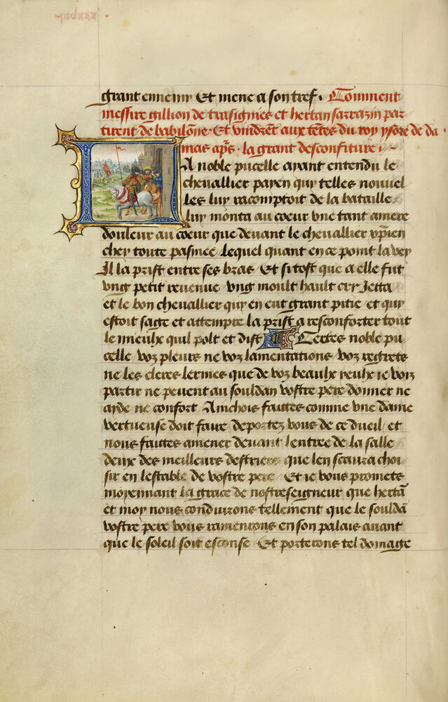 Initial L: Gillion and His Companion Hertan Riding to Rescue the Sultan