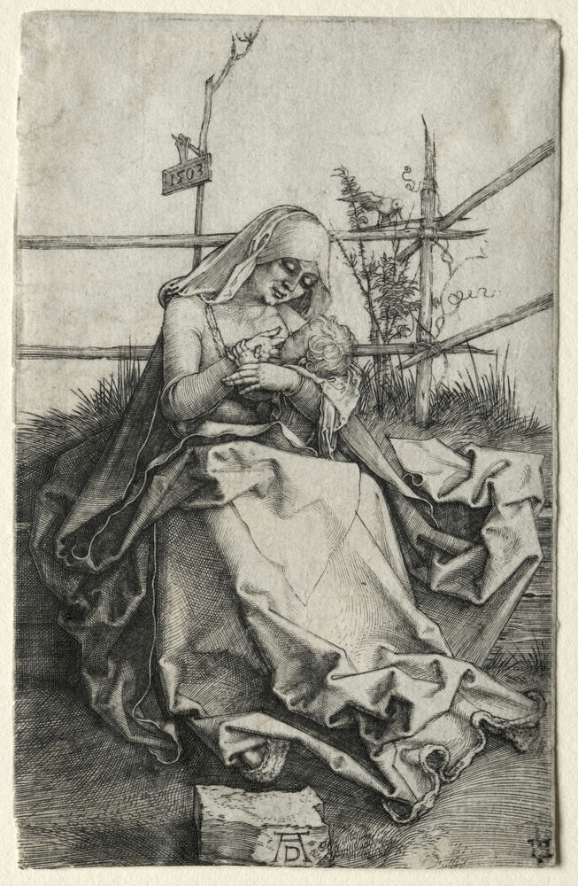 The Virgin and Child on a Grassy Bench
