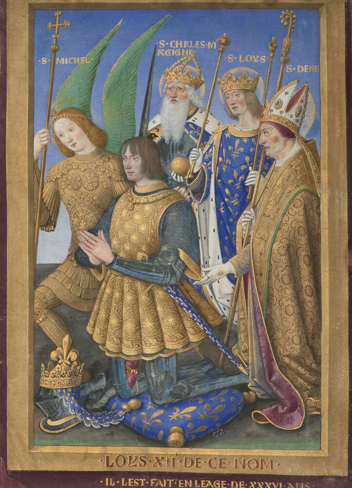 Louis XII of France Kneeling in Prayer, Accompanied by Saints Michael, Charlemagne, Louis, and Denis