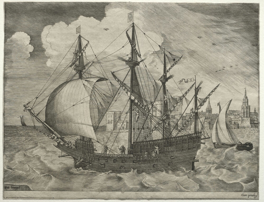 Sailing Vessels: Armed Four-Master Putting Out to Sea