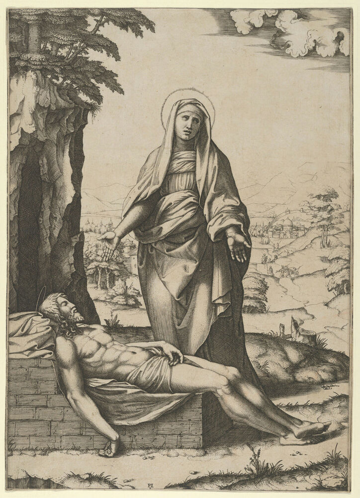 https://artsandculture.google.com/asset/the-pietà-the-virgin-standing-over-the-dead-christ-her-hands-outspread-marcantonio-raimondi-raphael-raffaello-sanzio-or-santi/ngF0keqzf9k-Zw