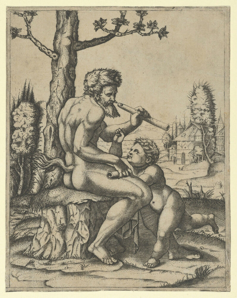 https://artsandculture.google.com/asset/a-faun-sitting-on-a-rock-holding-a-flute-in-his-left-hand-a-child-stands-between-his-knees-marcantonio-raimondi-raphael-raffaello-sanzio-or-santi/jwH7oa-4l-ZxZw