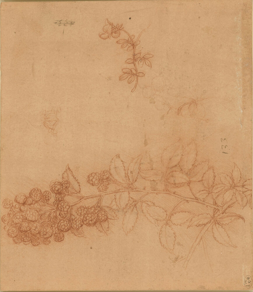 A branch of blackberry, and a stem of bird's-foot trefoil