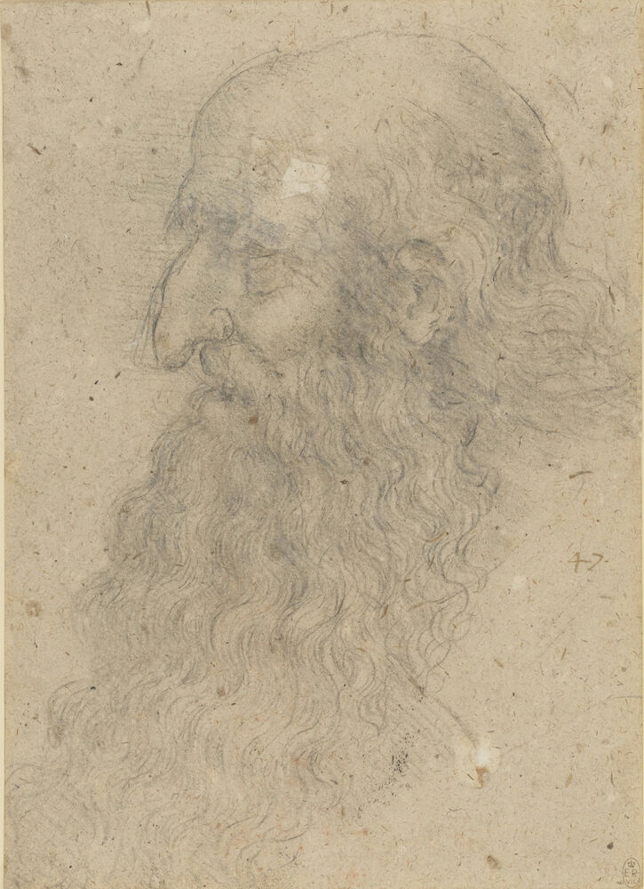 The head of an old bearded man in profile