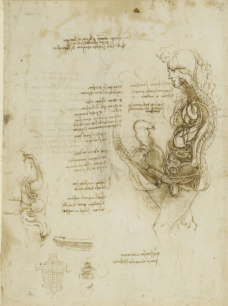 Recto: The viscera of a horse. Verso: The hemisection of a man and woman in the act of coition