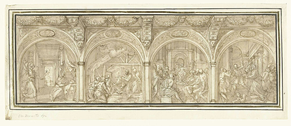 Ontwerp voor een muurdecoratie met vier voorstellingen