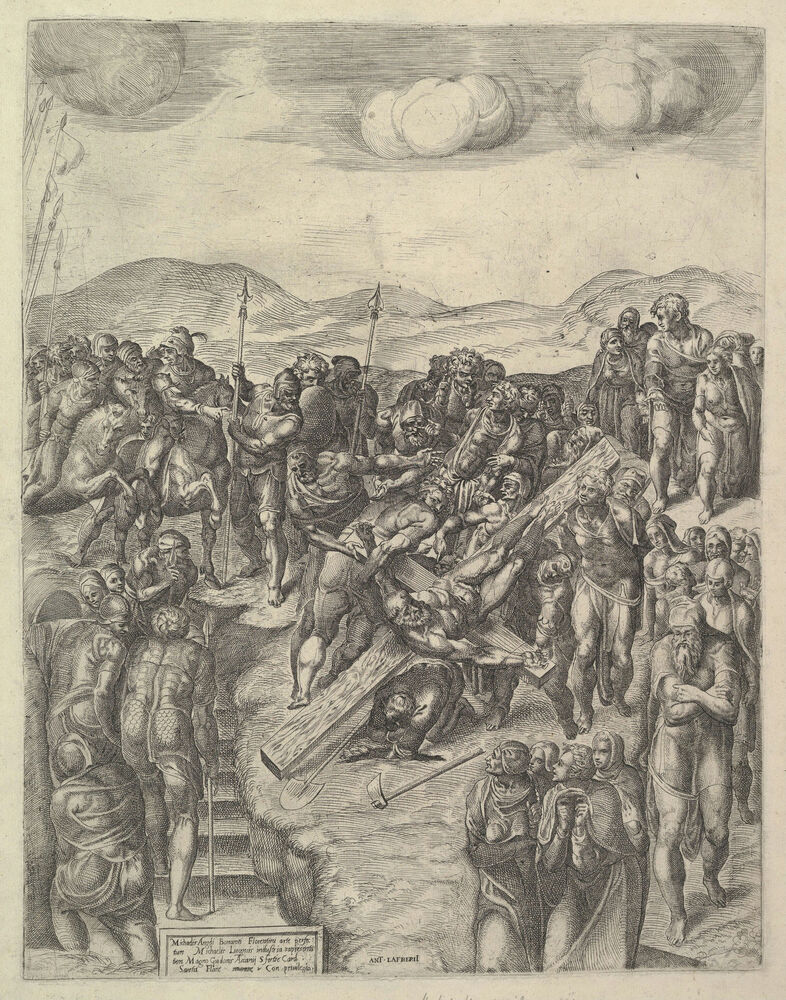 https://artsandculture.google.com/asset/the-crucifixion-of-st-peter-after-michelangelo-s-frescoes-in-the-pauline-chapel-vatican-palace-michelangelo-buonarroti-michele-lucchese-antonio-lafreri/7AFBEBl4vevziw