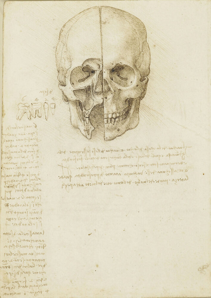 Recto: The cranium sectioned. Verso: The skull sectioned