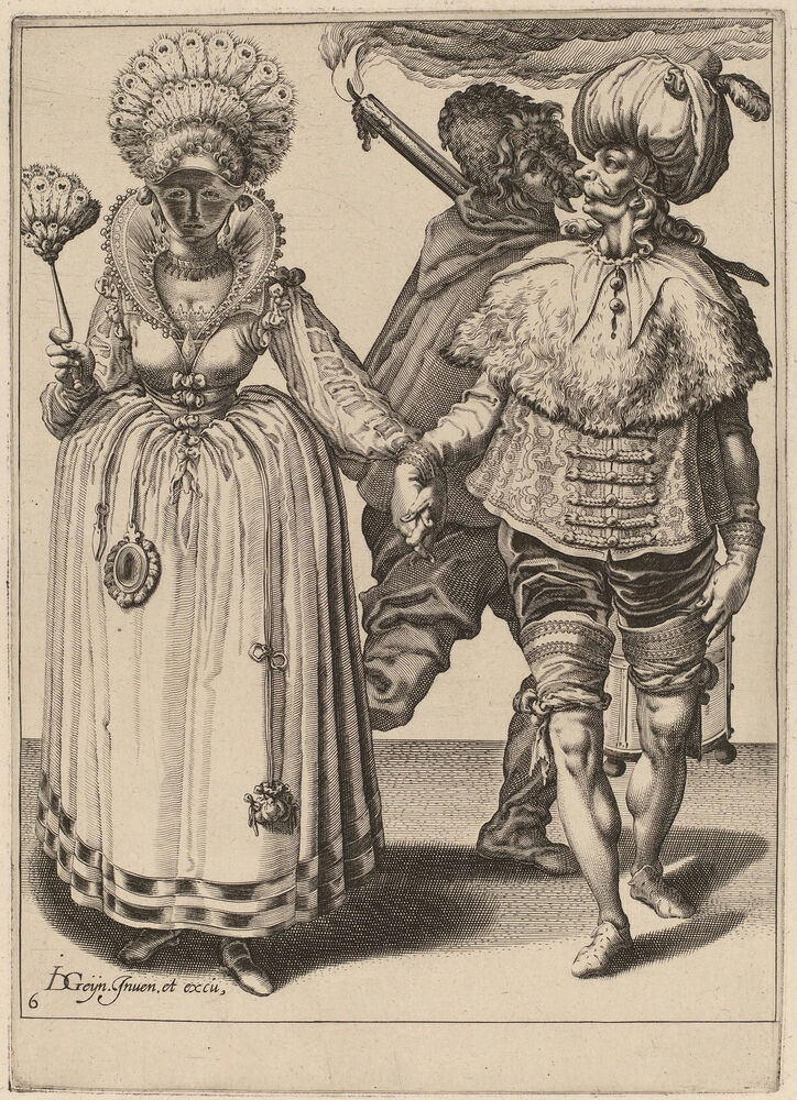 A Man with a Turban Leading a Woman Wearing Peacock Feathers