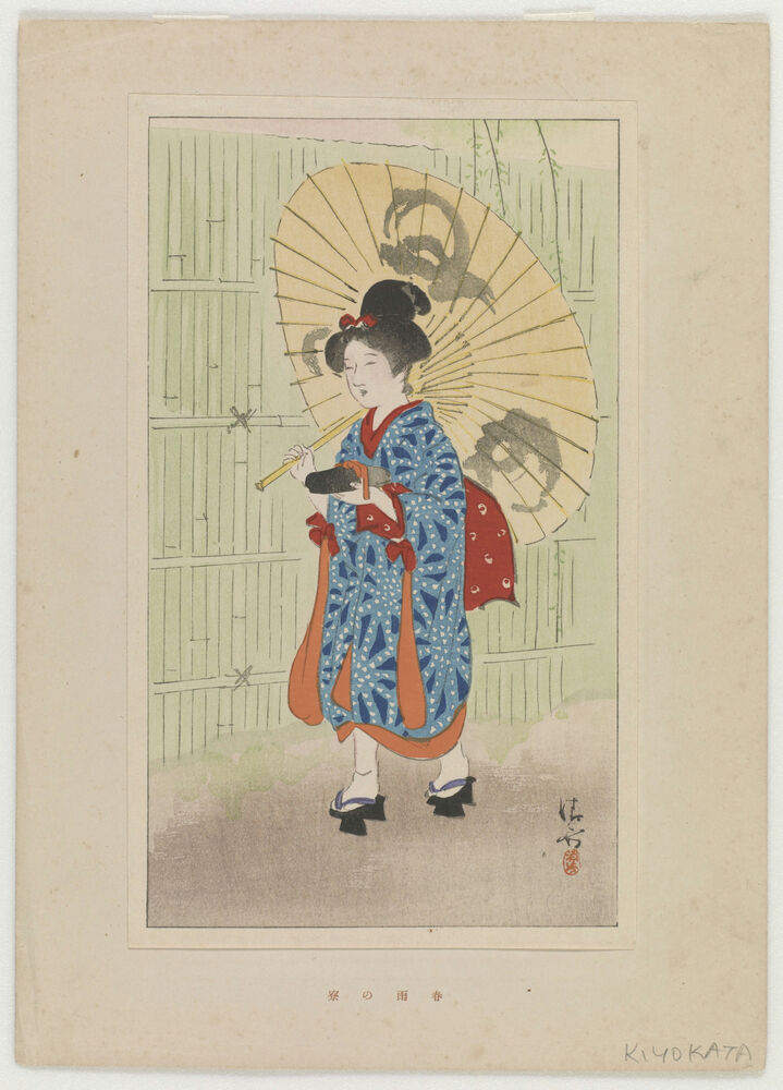 Charm of spring rain, from Portfolio of Beauties by Kiyokata