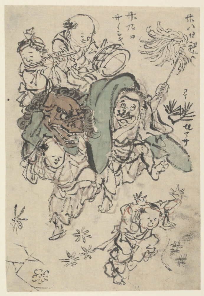 Sketch of children performing a lion dance