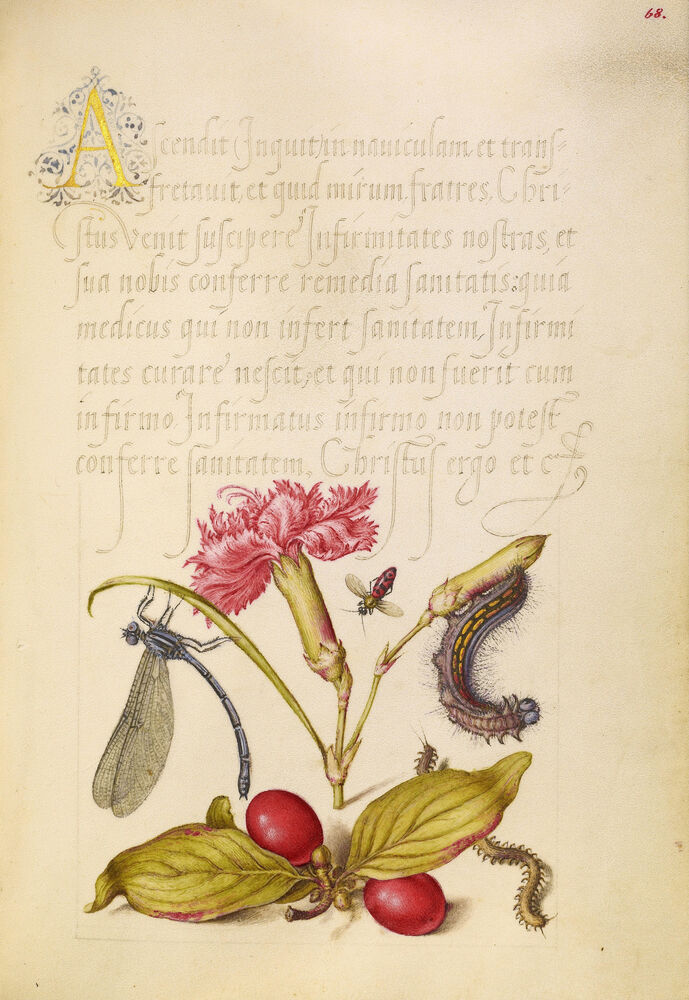 Damselfly, Carnation, Firebug, Caterpillar, Carnelian Cherry, and Centipede