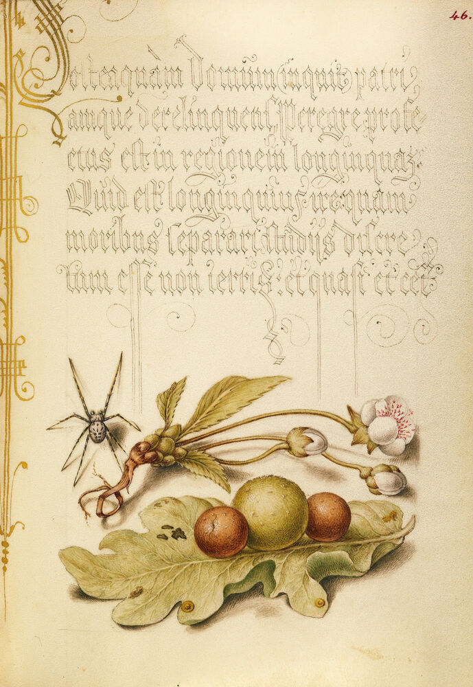 Spider, Sweet Cherry Flower, and English Oak Leaf with Galls
