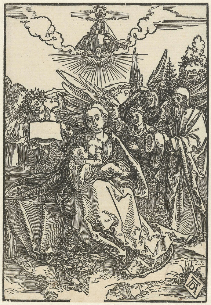 De Heilige Familie met vijf engelen