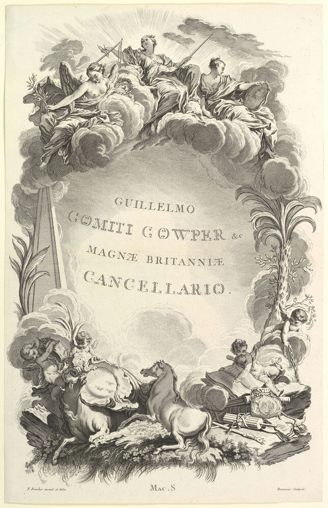 Frontispice pour le "Tombeau du comte William Cowper" (Frontispiece from the "Tomb of William Cowper"), from Tombeaux des Princes, des Grands Capitaines et autres Hommes illustres (Tombs of Princes, Great Captains, and other Illustrious Men)