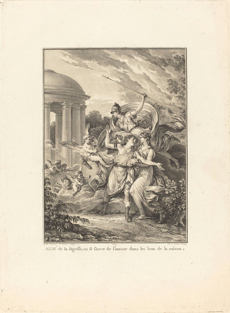 Frontispiece: Aidé de la sagesse, on se sauve de l'amour dans les bras de la raison