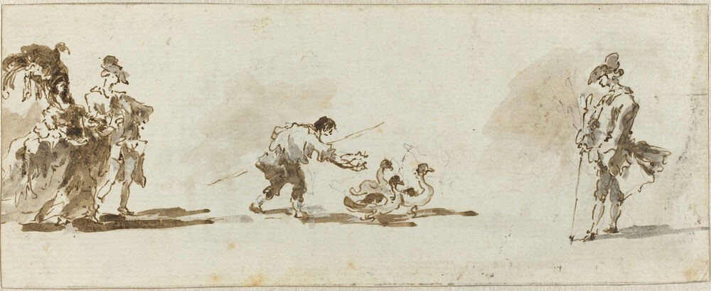 An Elegant Couple, a Gooseboy, and a Gentleman [recto]
