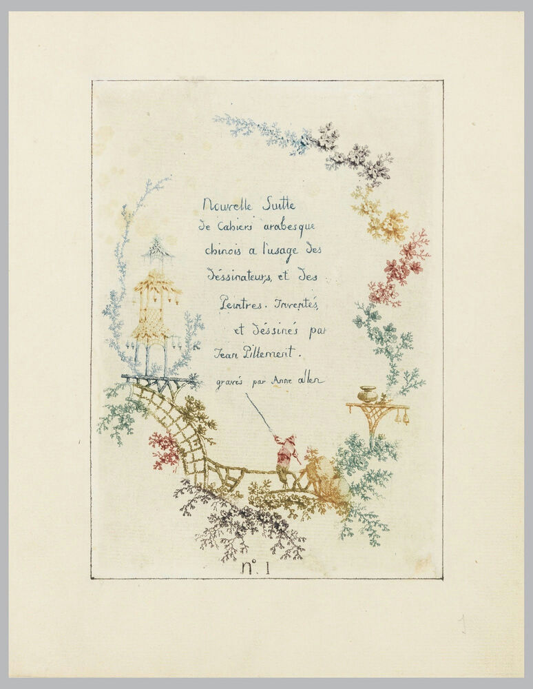 Title page, Plate 1 from "Nouvelle suite de cahiers arabesques chinois a l'usage des dessinateurs et des peintres", No.1, Inventes et dessines par Jean Pillement. Graves par Anne Allen.