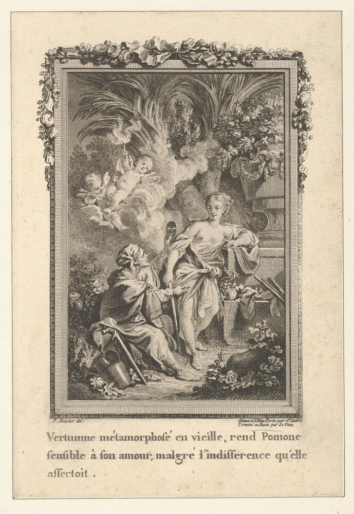 Vertumnus Transforms Himself into an Old Woman and Attempts to Woo Pomona, from Les Métamorphoses d'Ovide en Latin et en François de la traduction de M. l'Abbé Banier de l'Académie Royale des Inscriptions et Belles-Lettres. Avec des explications historiques. A Paris Chez Despilly rue saint Jacques à la croix d'or. MDCCLXVII. Avec Approbation et Privilège du Roi