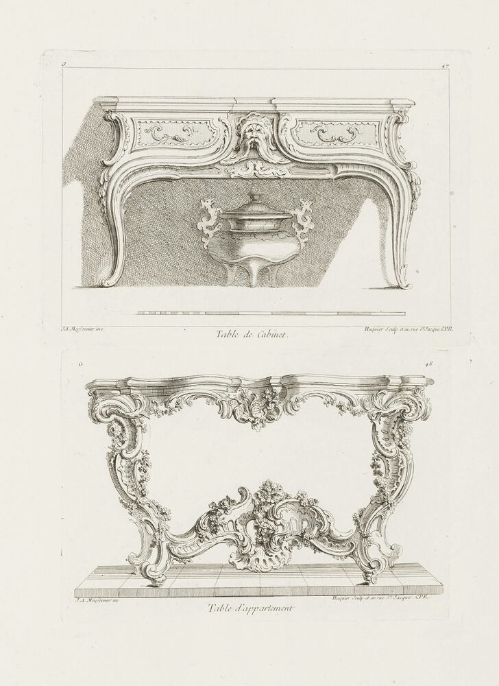 Table de Cabinet., 6th Plate [Study for a Table], pl. 47 in Oeuvre de Juste-Aurele Meissonnier