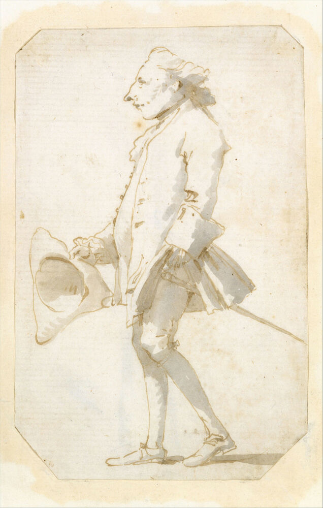 Caricature of a Man Holding a Tricorne, Walking to the Left
