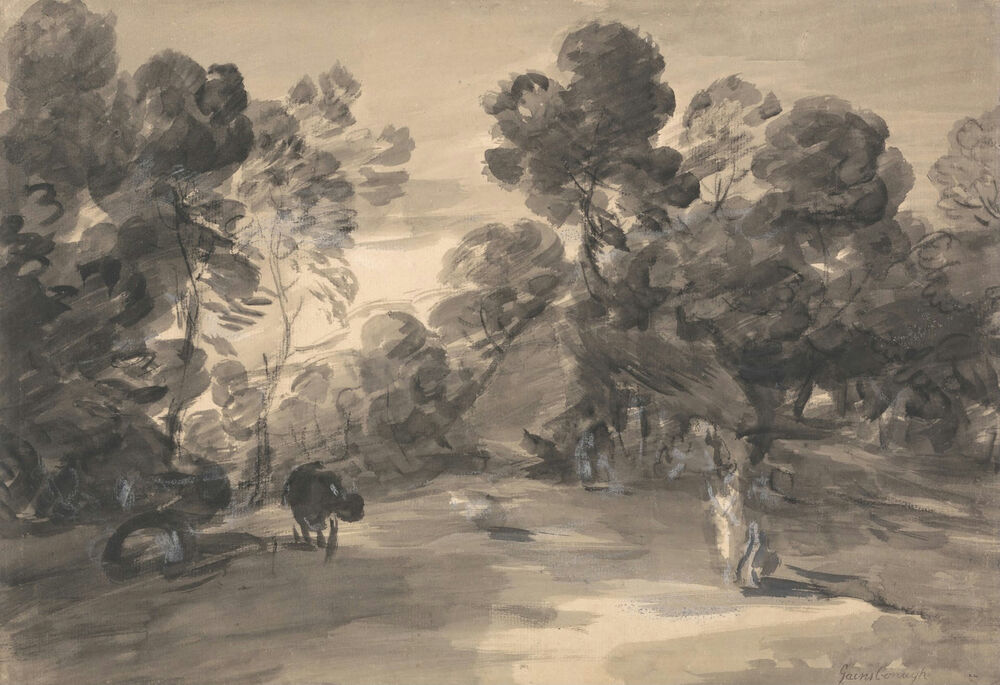 Wooded Landscape with Figures, Cottage and Cow