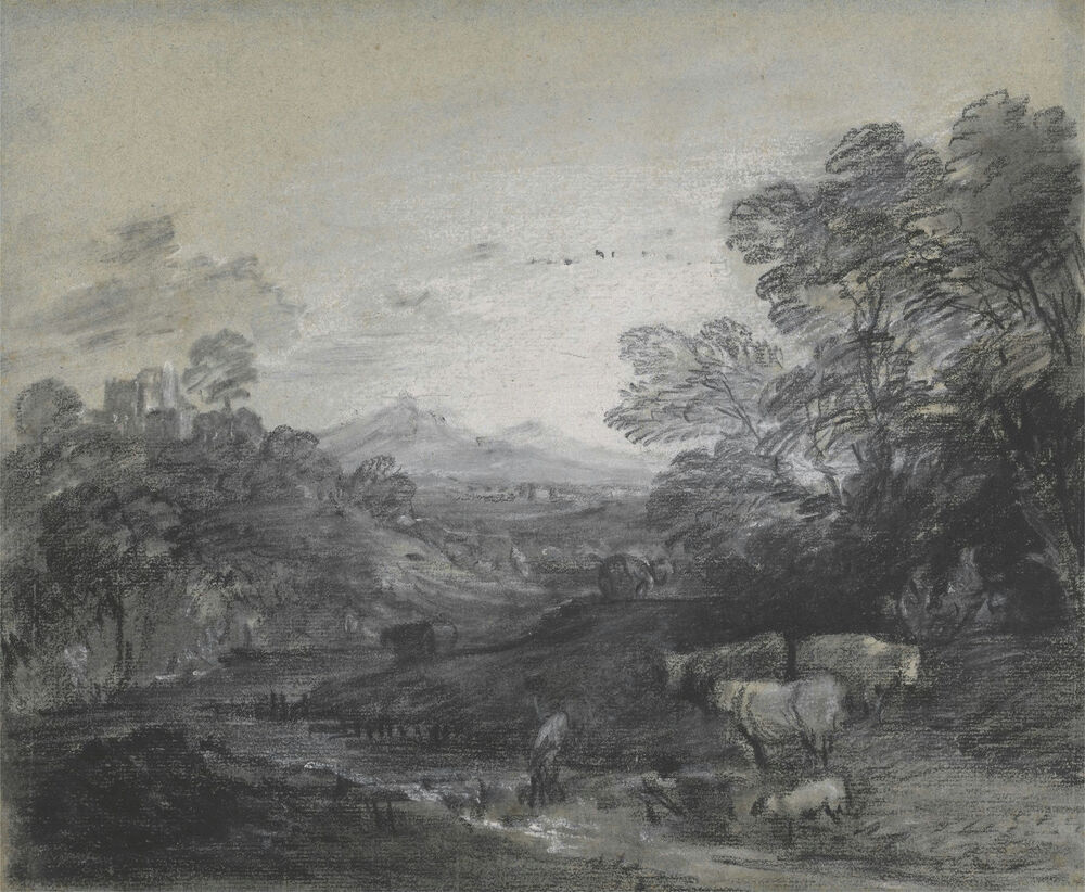 Wooded Landscape with Herdsmen and Cattle, Buildings on a Hill, and Rustic Lovers