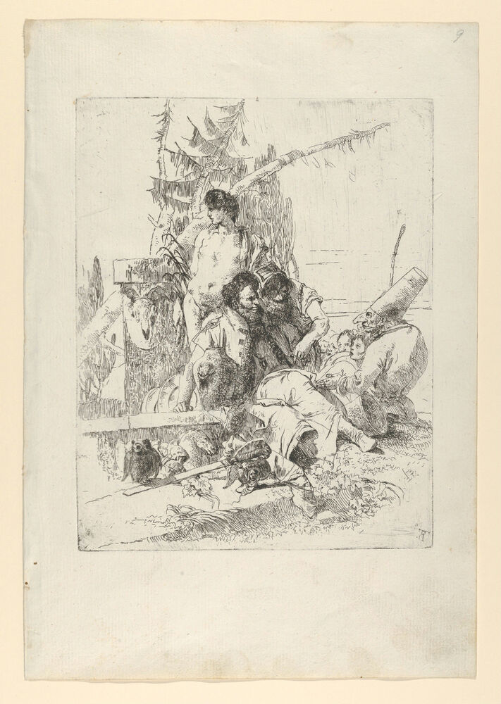 Two Figures Attentive to Punchinello, with Others, from the Scherzi