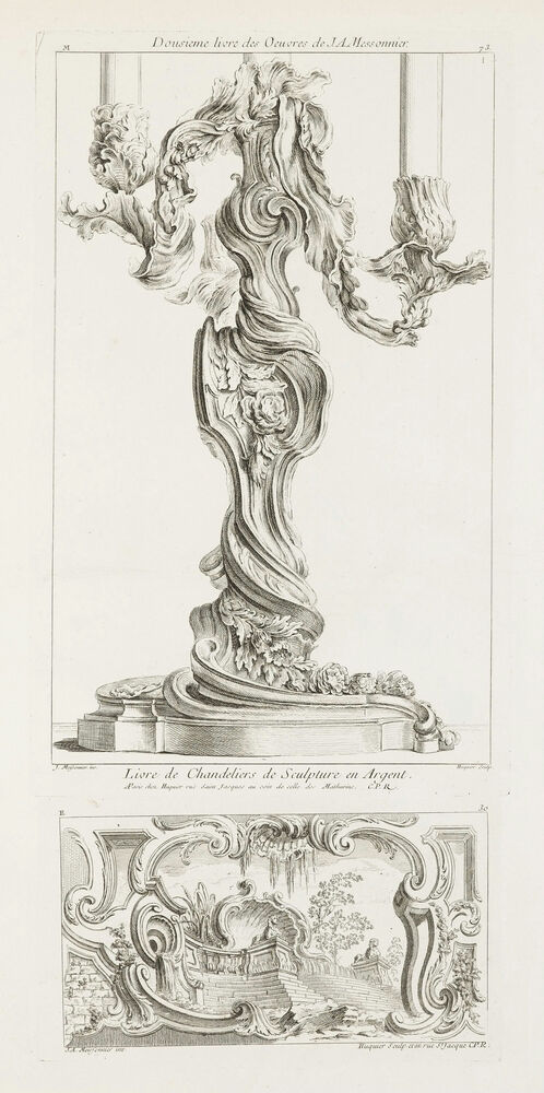 Dousieme livre des oeuvres de J.A. Meissonnier/Livre de Chandeliers de Sculpture en Argent.