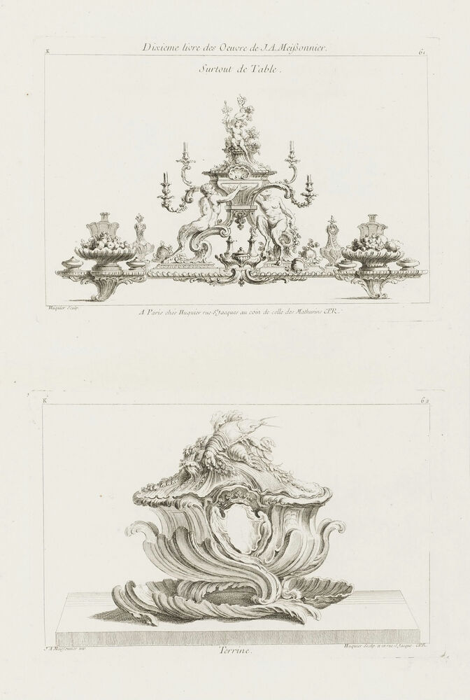 Dixieme livre des oeuvres de J.A. Meissonnier/Surtout de Table [Tenth Series of Designs from the work of J.A. Meissonnier/Table Centerpiece], pl. 61 in Oeuvre de Juste-Aurele Meissonnier
