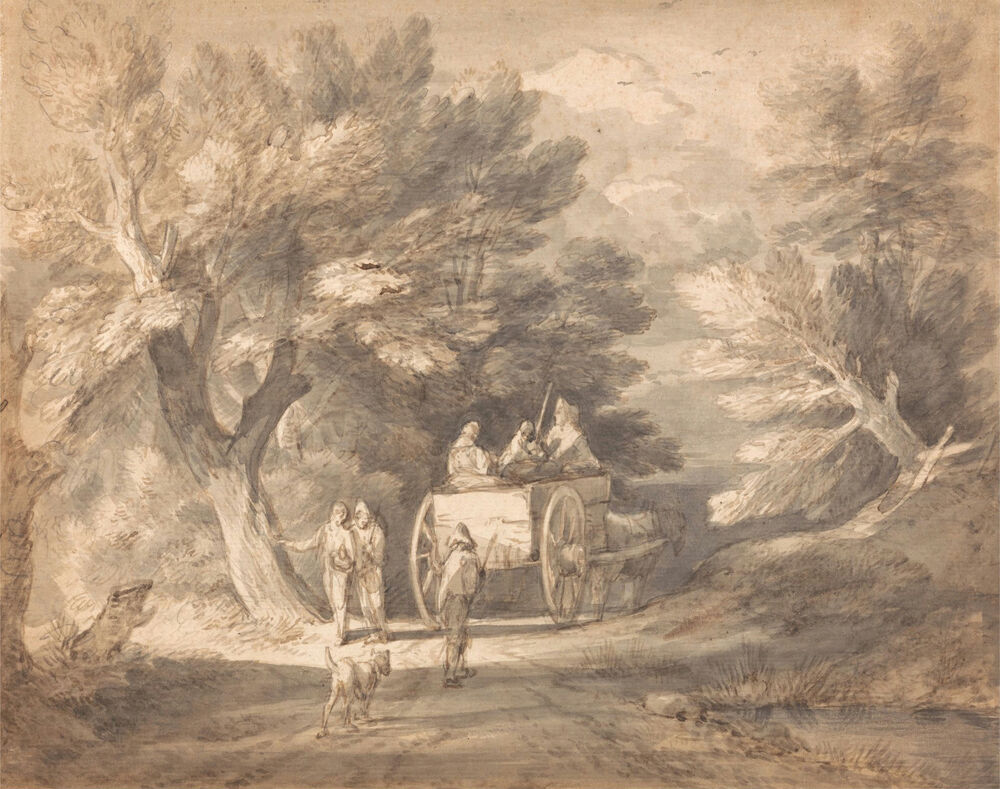 Wooded Landscape with Country Cart and Figures Walking down a Lane