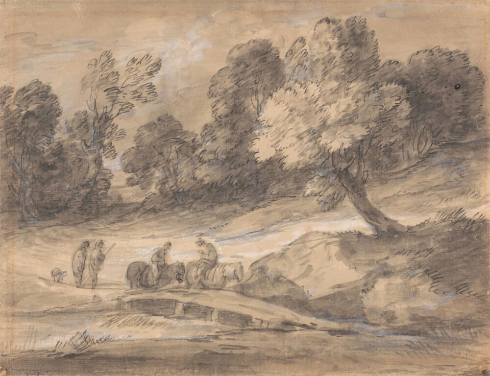 Wooded Landscape with Figures on Horseback Crossing a Bridge