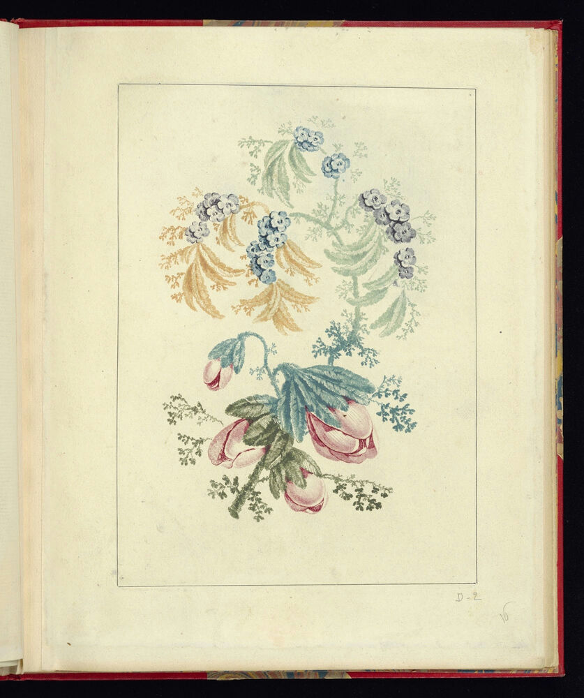 Ornamental Design with Small Blue Flowers, from Nouvelle suite de cahiers de flerurs naturelle a l'usage des dessinateurs et des peintres, No.1