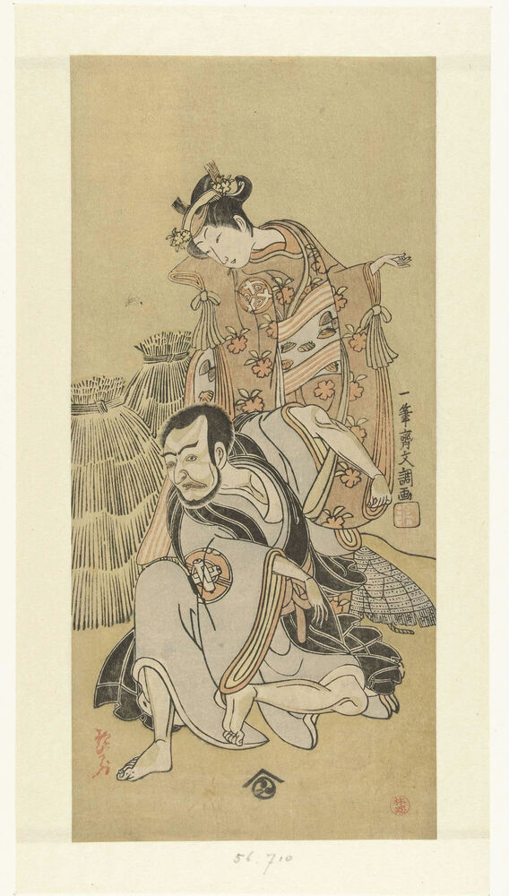 Acteurs Nakamura Utaemon I en Arashi Hinaji in het toneelstuk Kiyomizu Seigen