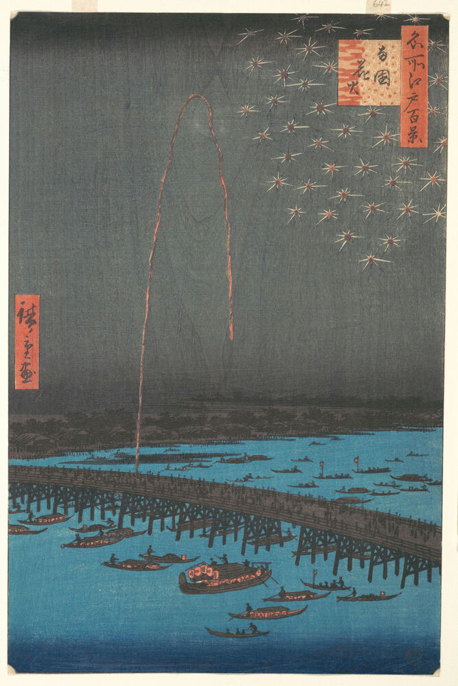 名所江戶百景 両国花火|Fireworks at Ryōgoku Bridge, from the series One Hundred Famous Views of Edo
