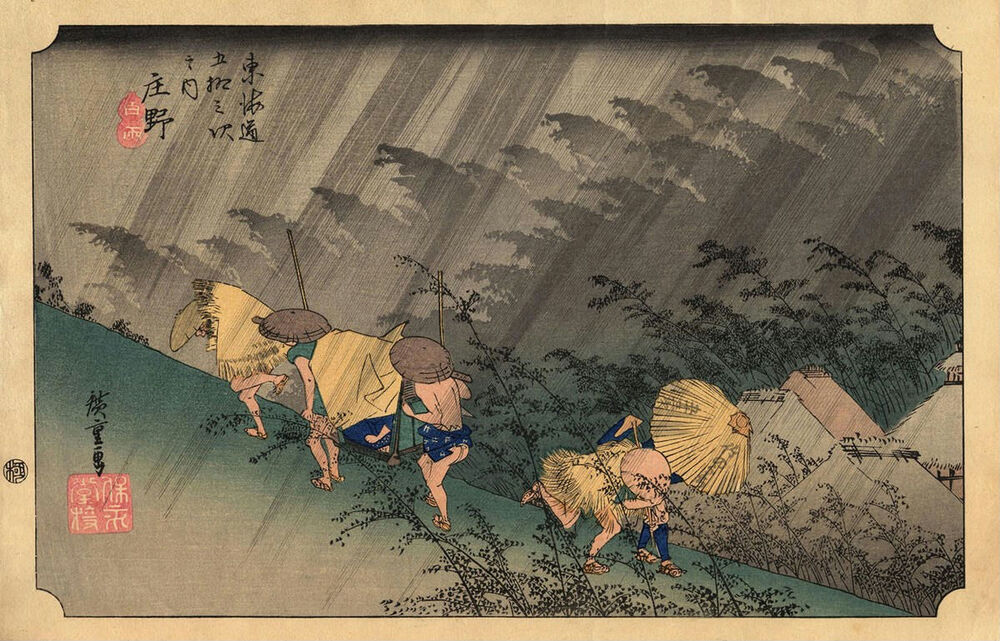 Early 20th century woodblock reproduction of Shono Station, from Fifty-three Stations of Tokaido