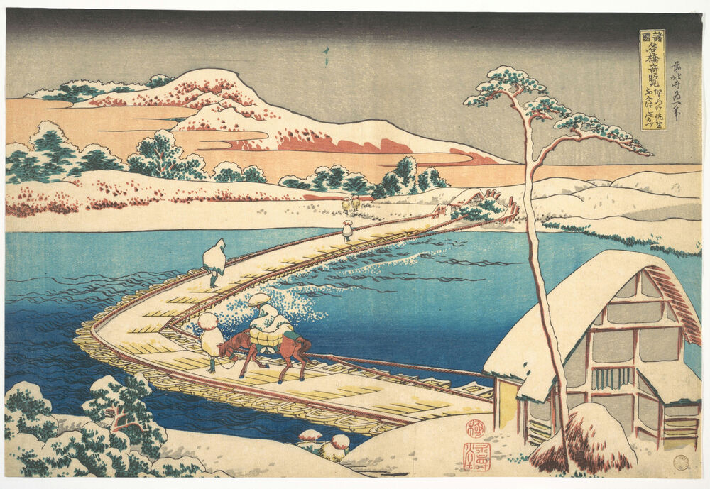 諸國名橋奇覧 かうつけ佐野ふなはしの古づ|Old View of the Boat-bridge at Sano in Kōzuke Province (Kōzuke Sano funabashi no kozu), from the series Remarkable Views of Bridges in Various Provinces (Shokoku meikyō kiran)