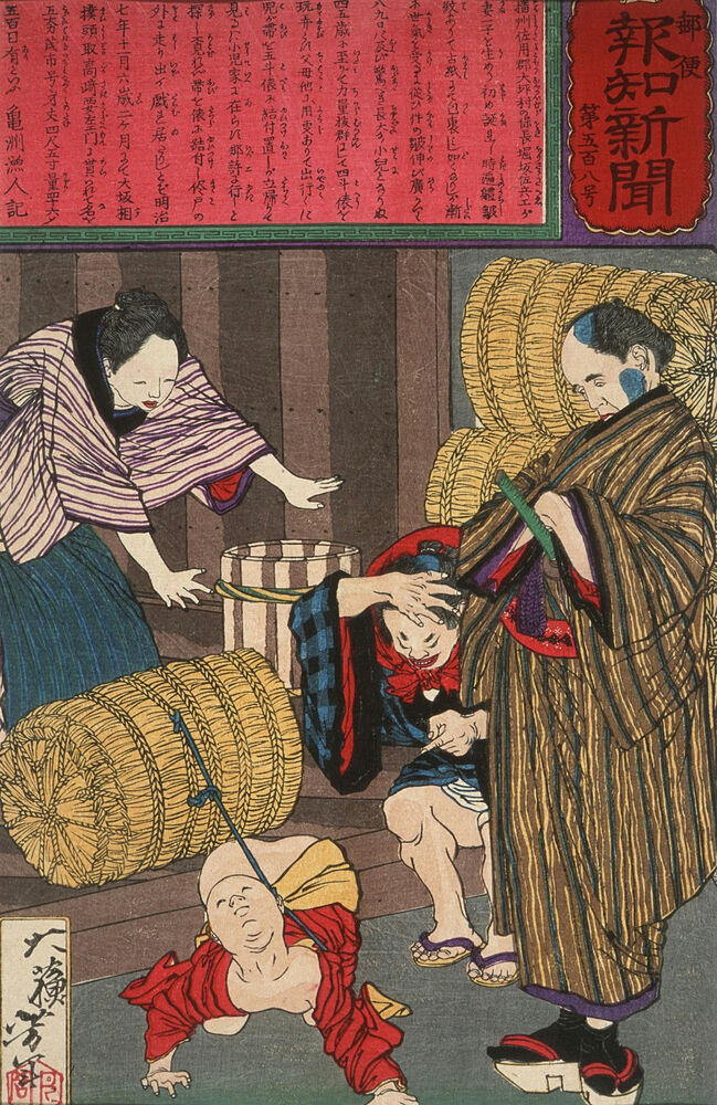 The Child of Horisaka Sahei Tied to a Rice Bale
