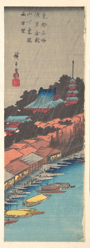Asakusa Kinryuzan shita Azumabashi uchu nozomi|東都名所 浅草金龍山下東橋雨中望|View of the Asakusa Kinryuzan Temple from the Azuma Bridge in the Rain
